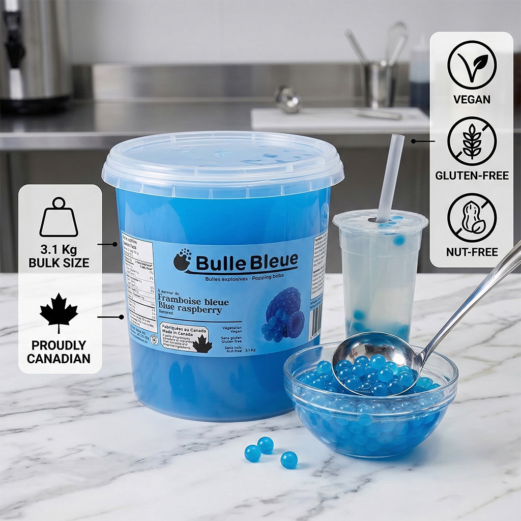 Les bulles de Bulle Bleue sont utilisées par une grande variété d’entreprises : bars à bubble tea, restaurants, crèmerie, bars à jus, chaînes de restauration rapide et traiteurs. Elles s’intègrent facilement dans les boissons, les desserts et les créations culinaires.